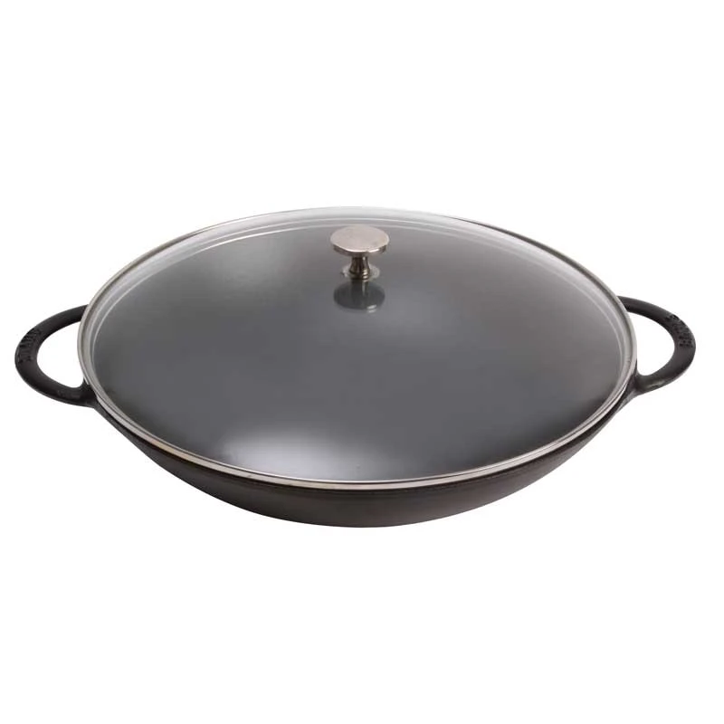 Staub Wok Aus Gusseisen Mit Glasdeckel 37 Cm, Schwarz